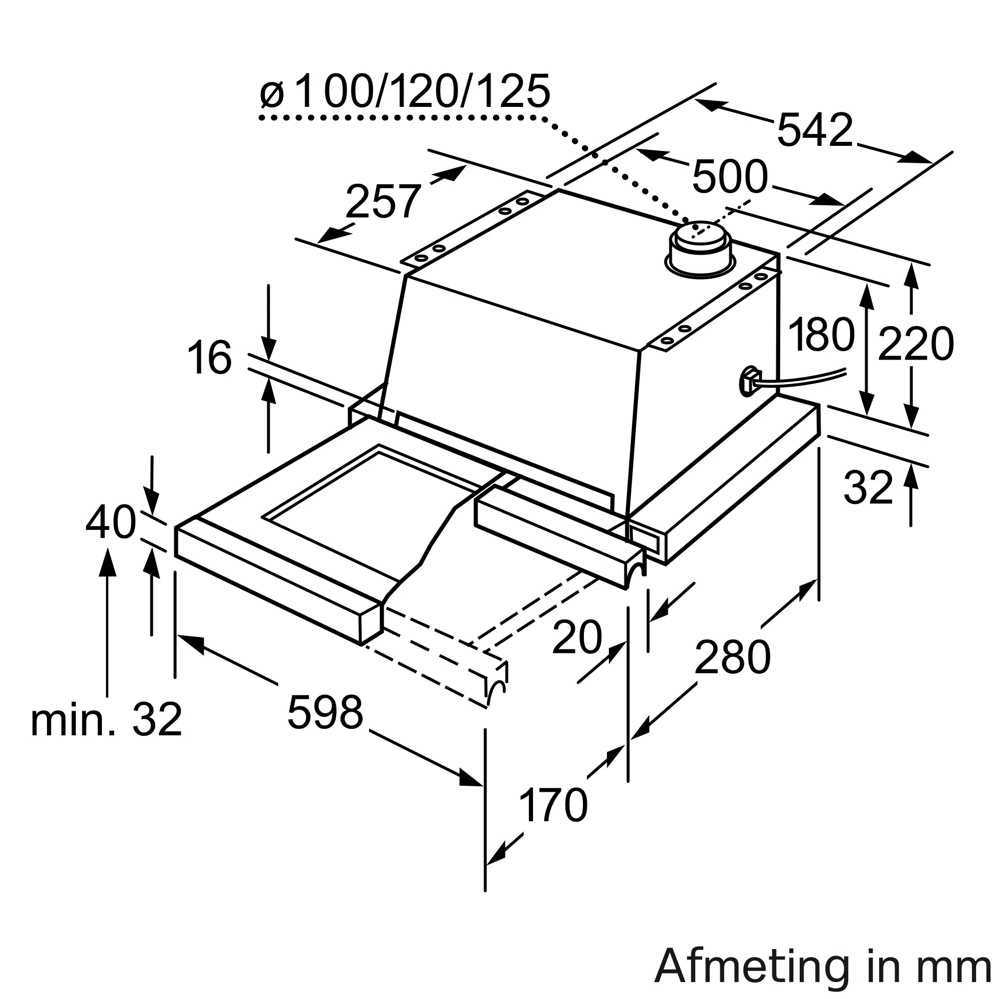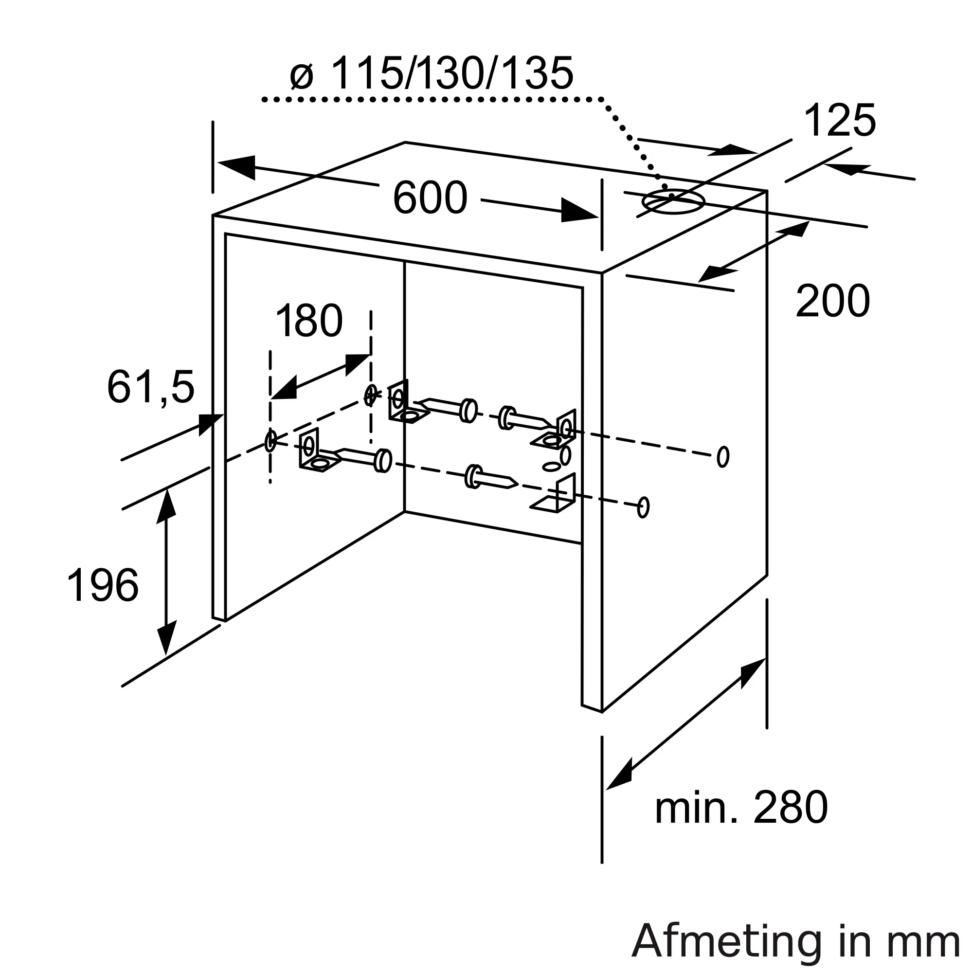 Afzuigcapaciteit luchtafvoer max. normaalstand