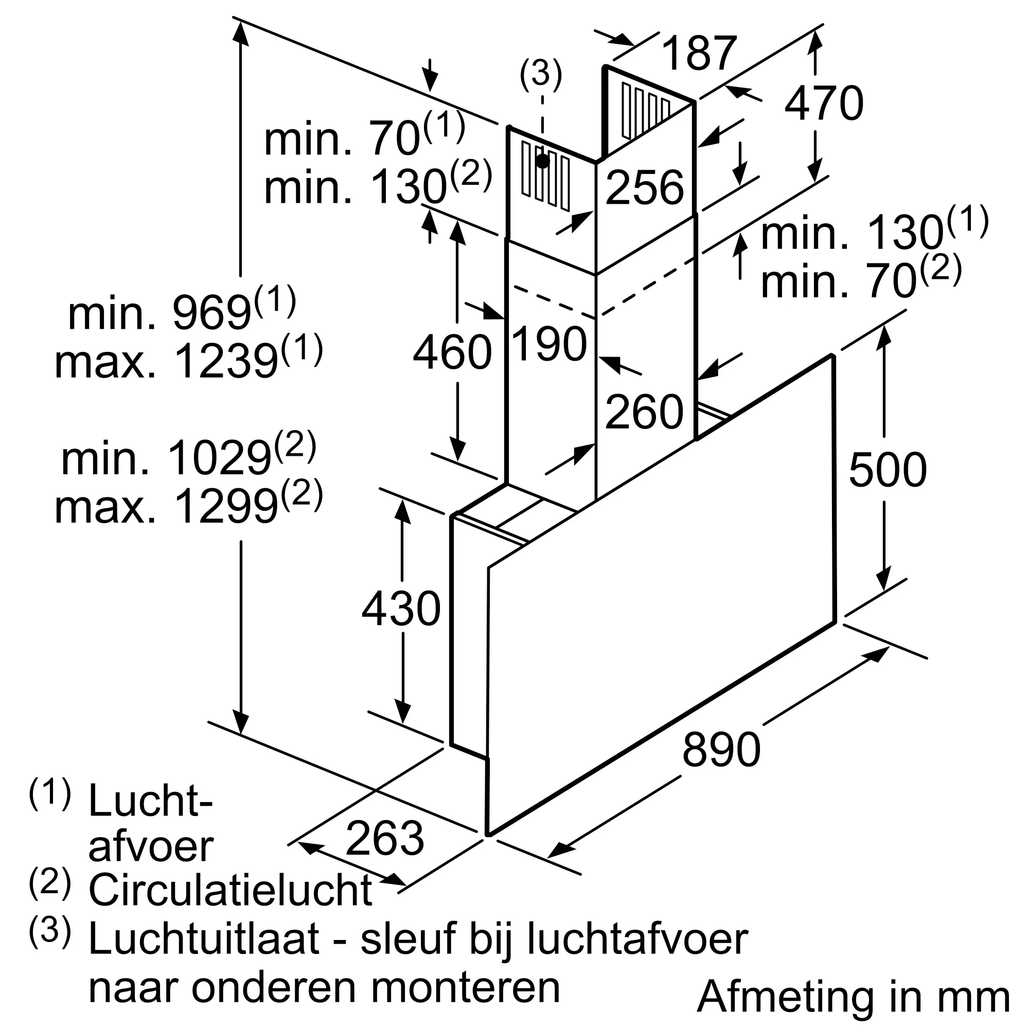 Afzuigcapaciteit luchtafvoer max. intensiefstand