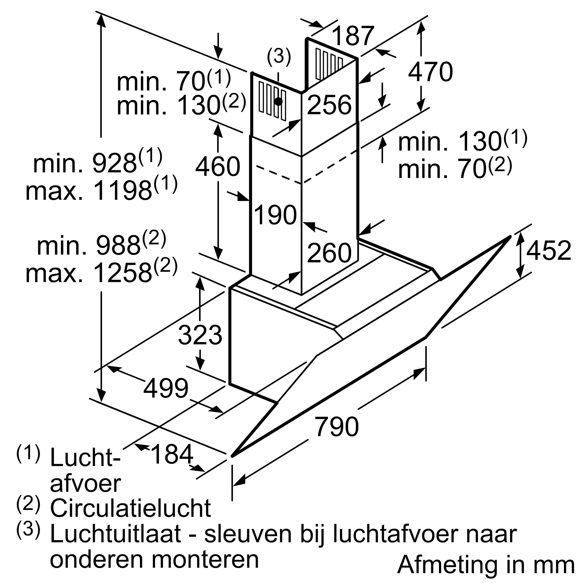 Afzuigcapaciteit luchtafvoer max. intensiefstand