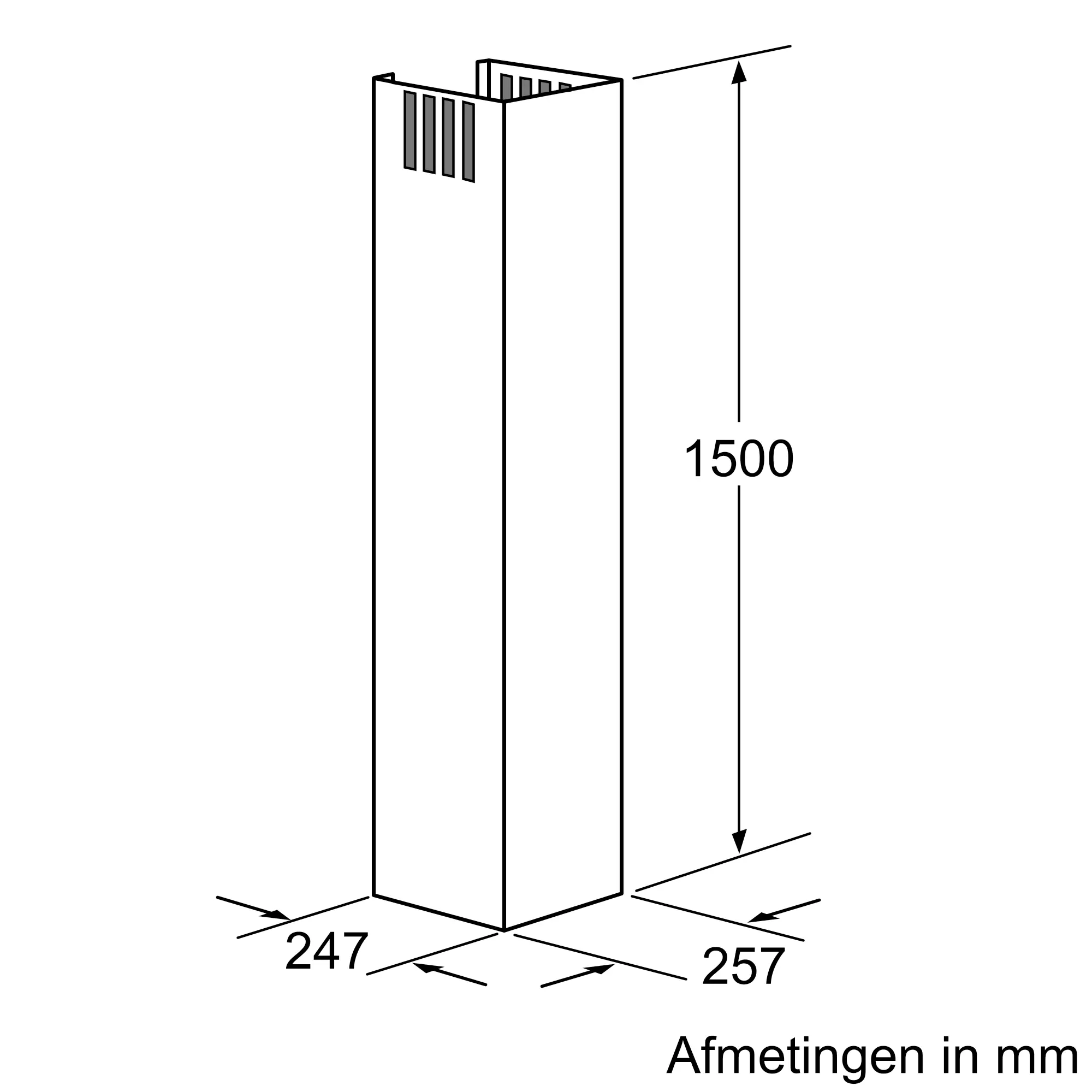 Schachtverlenging 1500 mm voor wandschouwkap