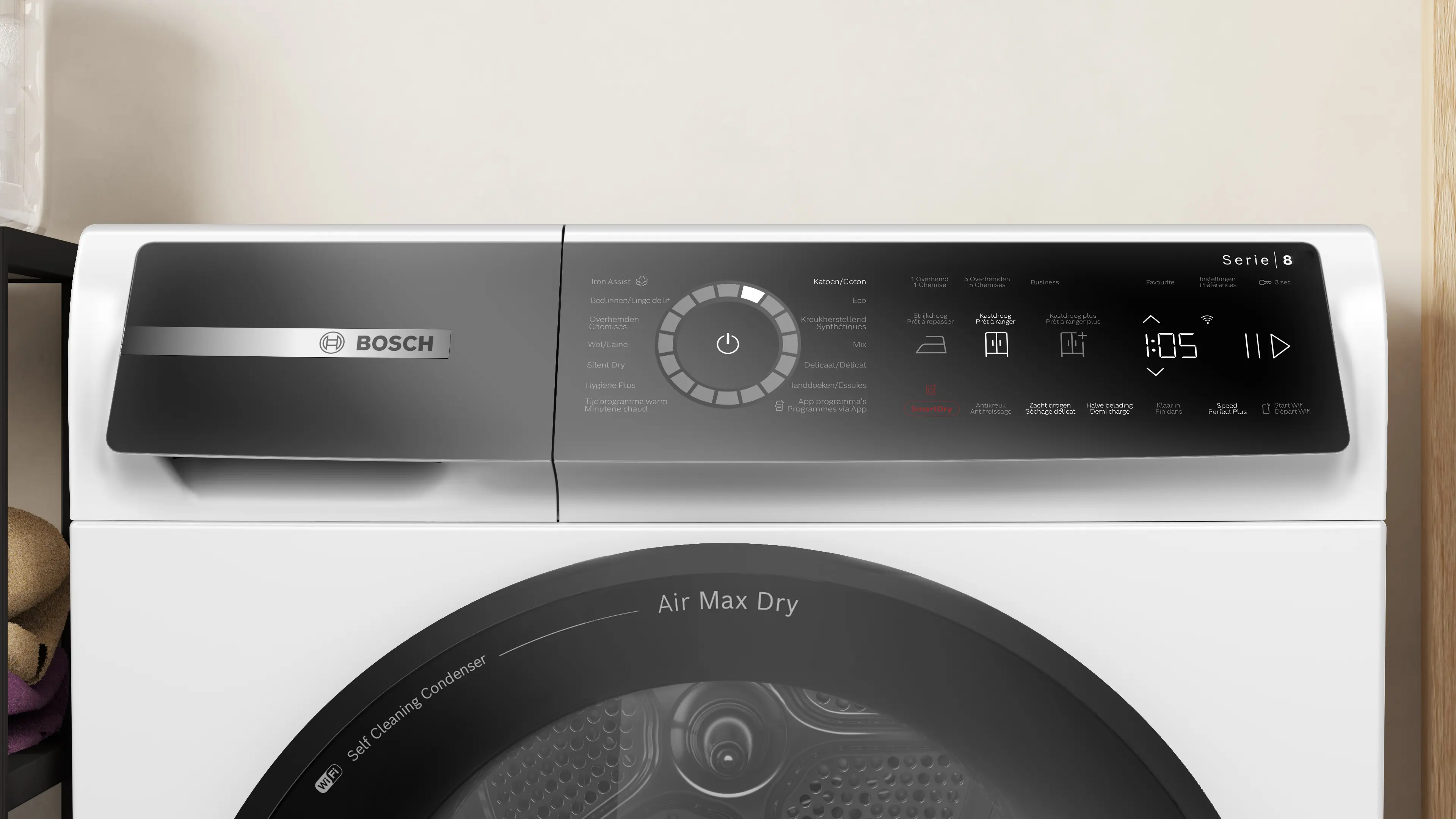 Home ConnectVoetnoot 1: Van tijd tot tijd bieden we updates om de functionaliteiten van je aangesloten huishoudelijke apparaat te behouden (met name beveiligingsupdates). Dergelijke updates ken je van je smartphone. Als je geïnformeerd wilt worden wanneer er een update gereed is voor je Home Connect-apparaat, ga je als volgt te werk: Download de Home Connect-app en registreer en verbind het apparaat in de app. Meer informatie is dan beschikbaar in de Home Connect-app.,Voetnoot 2: Sommige van de weergegeven functies zijn alleen toegankelijk als het apparaat via internet verbonden is met een Home Connect-account en een SingleKey ID-account. Home Connect is een dienst van Home Connect GmbH. Ga voor meer informatie over Home Connect naar www.home-connect.com.
